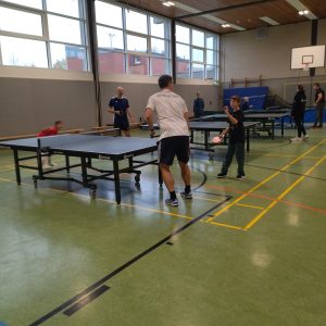Das Tischtennis-Training für Erwachsene wird mittwochs und freitags angeboten. Wer möchte, kann sich auch an den Punktspielen unserer 4er-Mannschaft, derzeit in der 3. Bezirksklasse des Bezirks Rhein-Wupper, beteiligen. Das ist aber kein Muss!